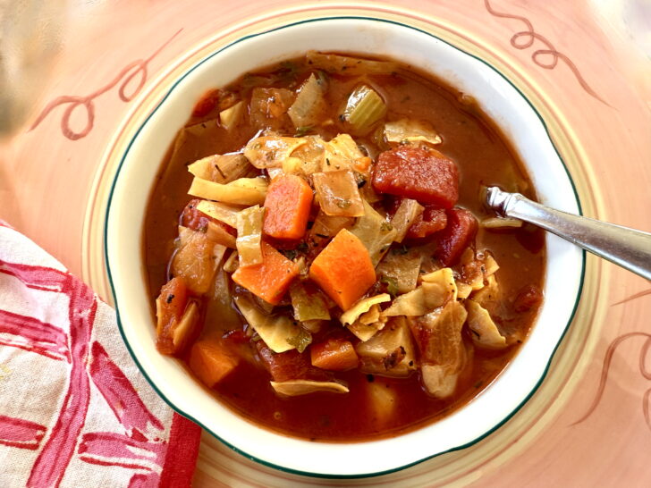 There are many reasons why cabbage soup has been loved through the years. When prepared correctly, it’s nourishing, incredibly budget-friendly, and packed with flavor in every spoonful. This recipe isn’t the bland, tasteless, ‘diet’ version from decades ago. Instead, it has big pieces of cabbage with tender chunks of vegetables simmered slowly in a savory, tomato-herb-based broth, and comes together to create a cabbage soup that delivers pure, delicious comfort every time.